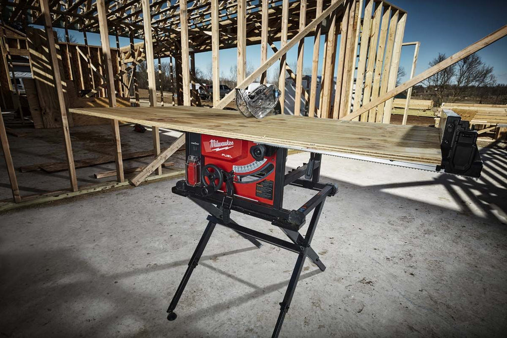 The Milwaukee Folding Table Saw Stand is designed to be used with the Milwaukee M18 FUEL™ 8-1/4 Table Saw with One-Key (model 2736). The stand features all steel construction to handle the conditions of a jobsite. Compact, lightweight design allows for easy transportation and storage. A quick attach latching system keeps the saw lock onto the stand when in use and easily detaches once you are done.