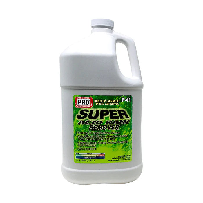 A creamy, oil base machine cleaner formulated to safely repair clear coat, lacquer and enamel finishes damaged by acid rain, chemical etching and water spots. Micro abrasive system levels damaged surfaces and leaves a clean, glossy surface, ready for final finishing. For hand or machine use. Safe for all types of paint finishes.