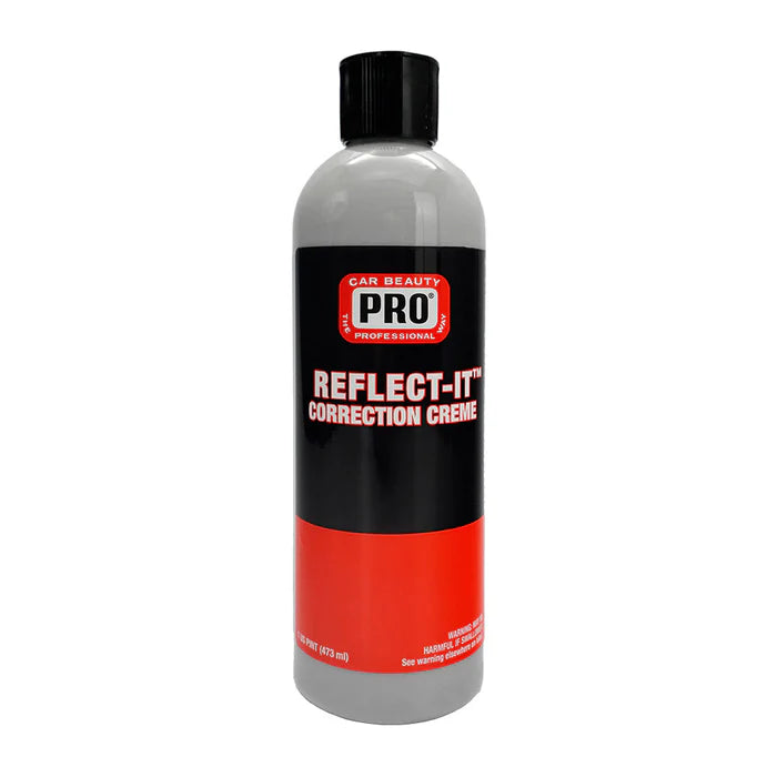 This medium-cut correction creme restores depth of gloss and color while leaving a surface free of swirls or compound haze on all types of paint finishes. Formulated using an advanced blend of diminishing, micro synthetic silica abrasives, Reflect-It™ quickly removes 2000 - 3000 grit sand scratches, cobweb scratches, swirl marks, water spots and other paint imperfections. Reflect-It™ produces best results when used with dual action polishers and the PRO® D/A foam pads. Produces a clean paint surface ready for final finishing. Reflect-It™'s high lubricity formula produces minimal dust and does not sling. For machine use only. P-5